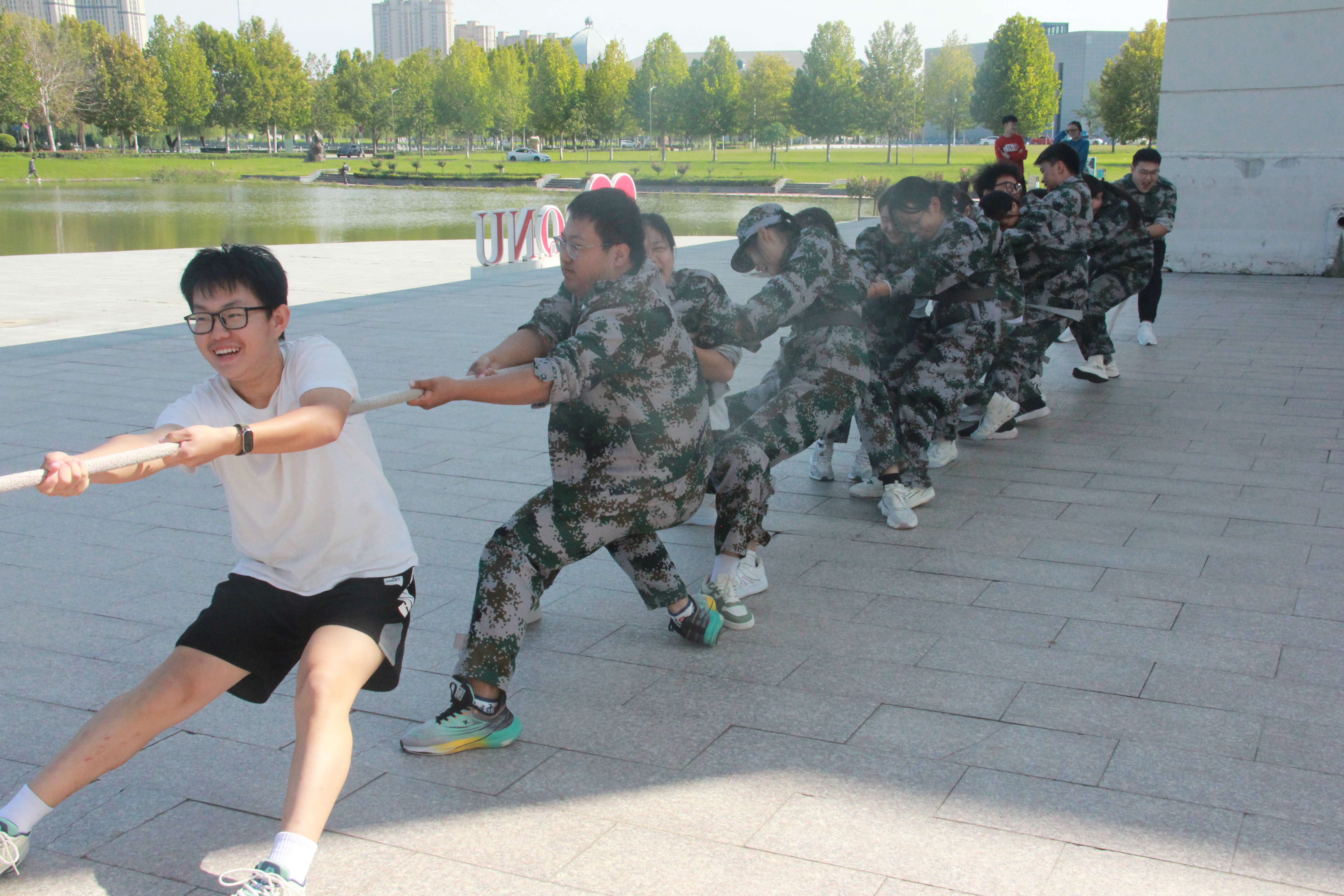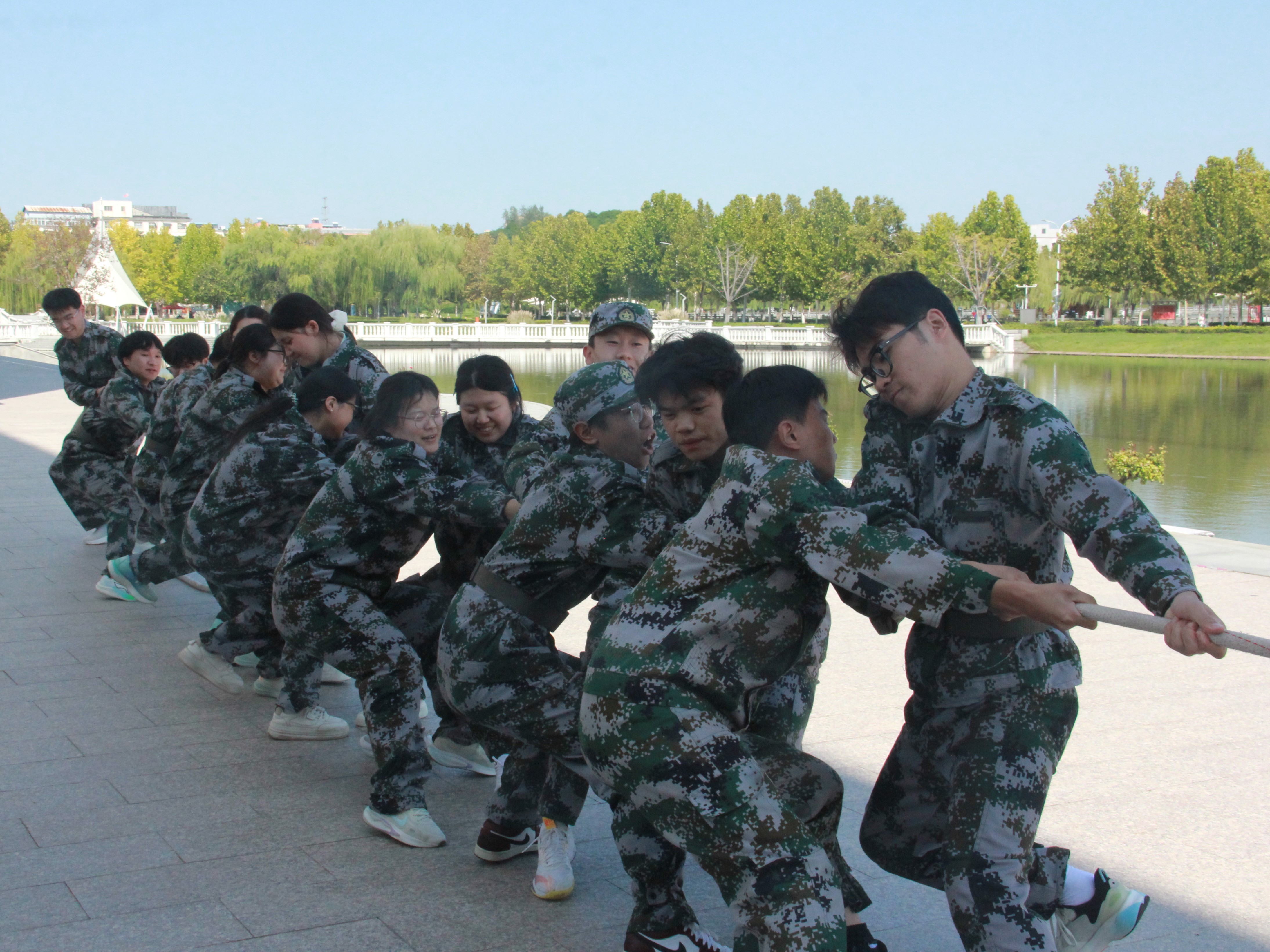 为进一步加强新生各班级间的沟通与交流,营造团结向上的校园氛围,9月25日,测绘与规划学院于三商楼中楼东侧顺利举办“凝心聚力 ‘绳’采飞扬”新生拔河比赛。2025级辅导员苏婉月、2024辅导员张瑞杰、园林25-1班主任任毛飞、测绘工程专业教师孙奇、地理科学专业教师吴方涛参与指导本次比赛,2025级全体新生参加比赛。