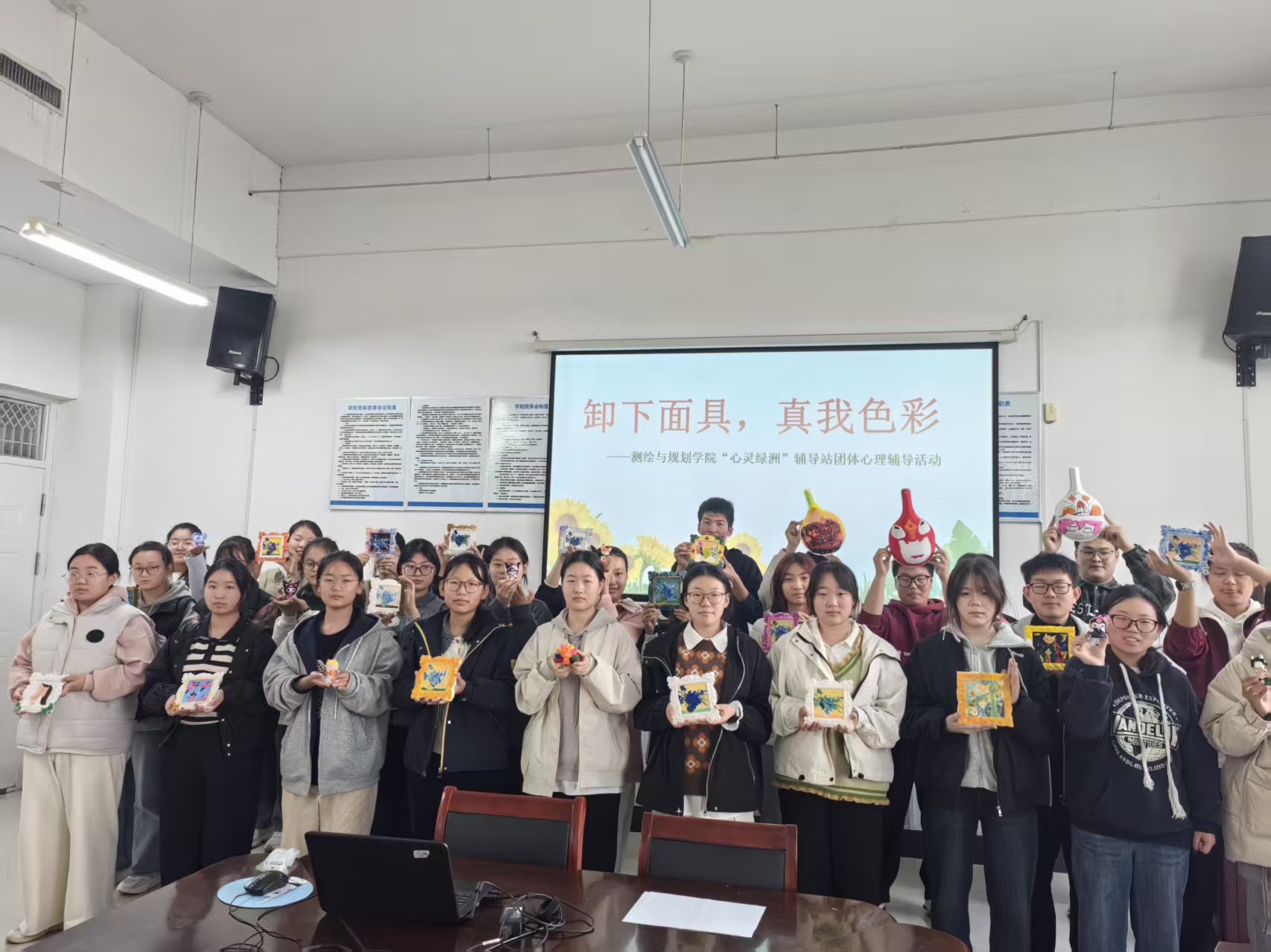 10月30日上午,测绘与规划学院“心灵绿洲”辅导站开展“卸下面具,真我色彩”团体辅导活动,地理科学(全免)25-1班全体学生参与本次活动,活动由心灵绿洲辅导站负责人苏婉月主持。
