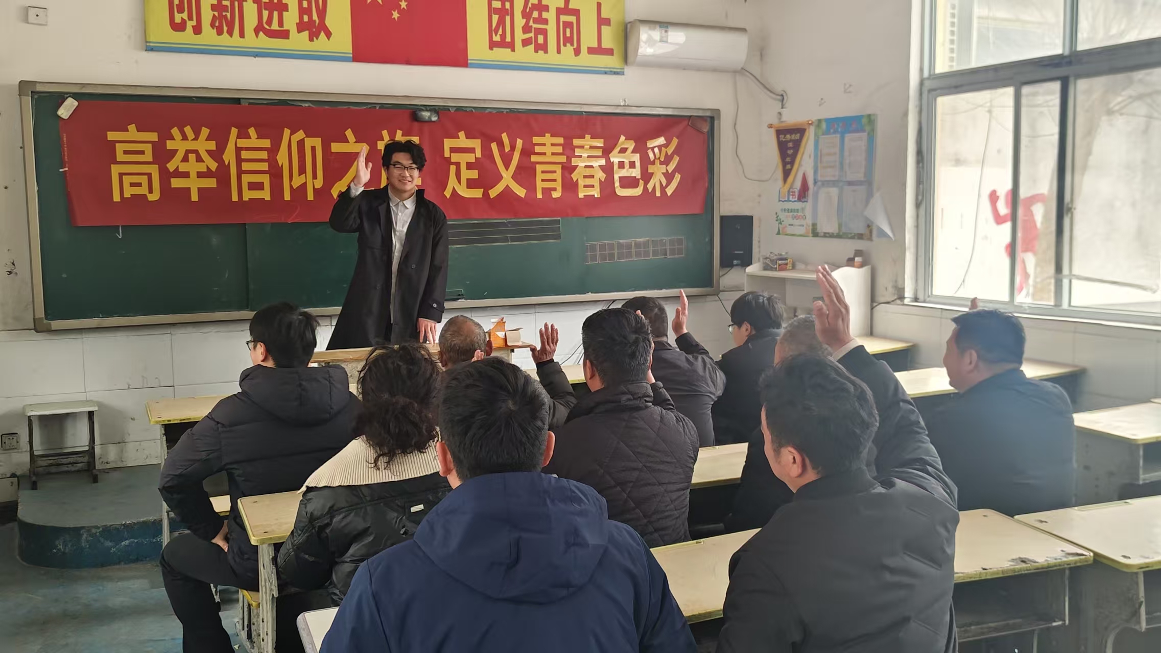 宣讲团成员王乾宇赴商丘市虞城县稍岗乡中心小学,围绕教育工作发展、教育惠民政策、乡村教育变化开展专题宣讲。宣讲中,他结合“十四五”时期基层教育发展成果,用生动案例向师生宣讲党的创新理论与教育方针,让理论知识走进校园、贴近师生。