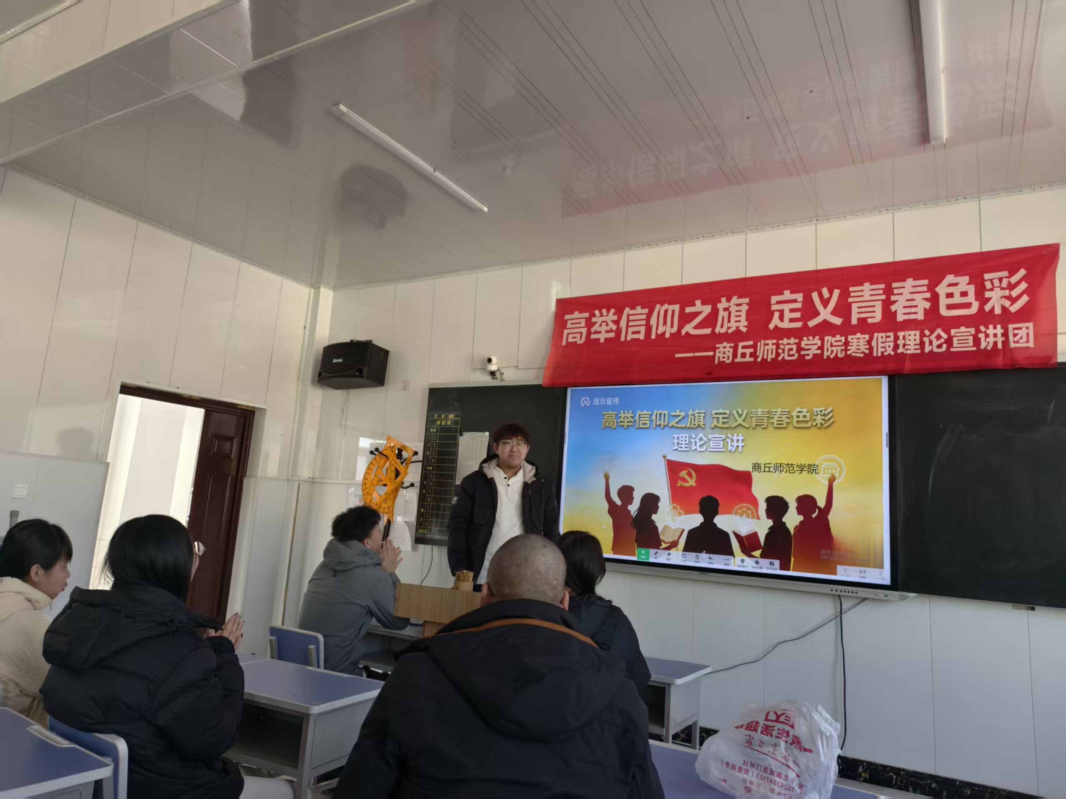2026年寒假期间,测绘与规划学院组建“青春的色彩”理论宣讲团赴家乡开展“高举信仰之旗 定义青春色彩”主题宣讲活动。