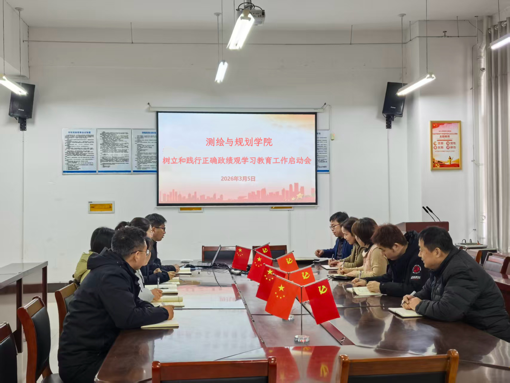 3月5日,测绘与规划学院党委召开了树立和践行正确政绩观学习教育工作启动会,就开展树立和践行正确政绩观学习教育进行安排部署。院长、党委副书记贺振主持会议。