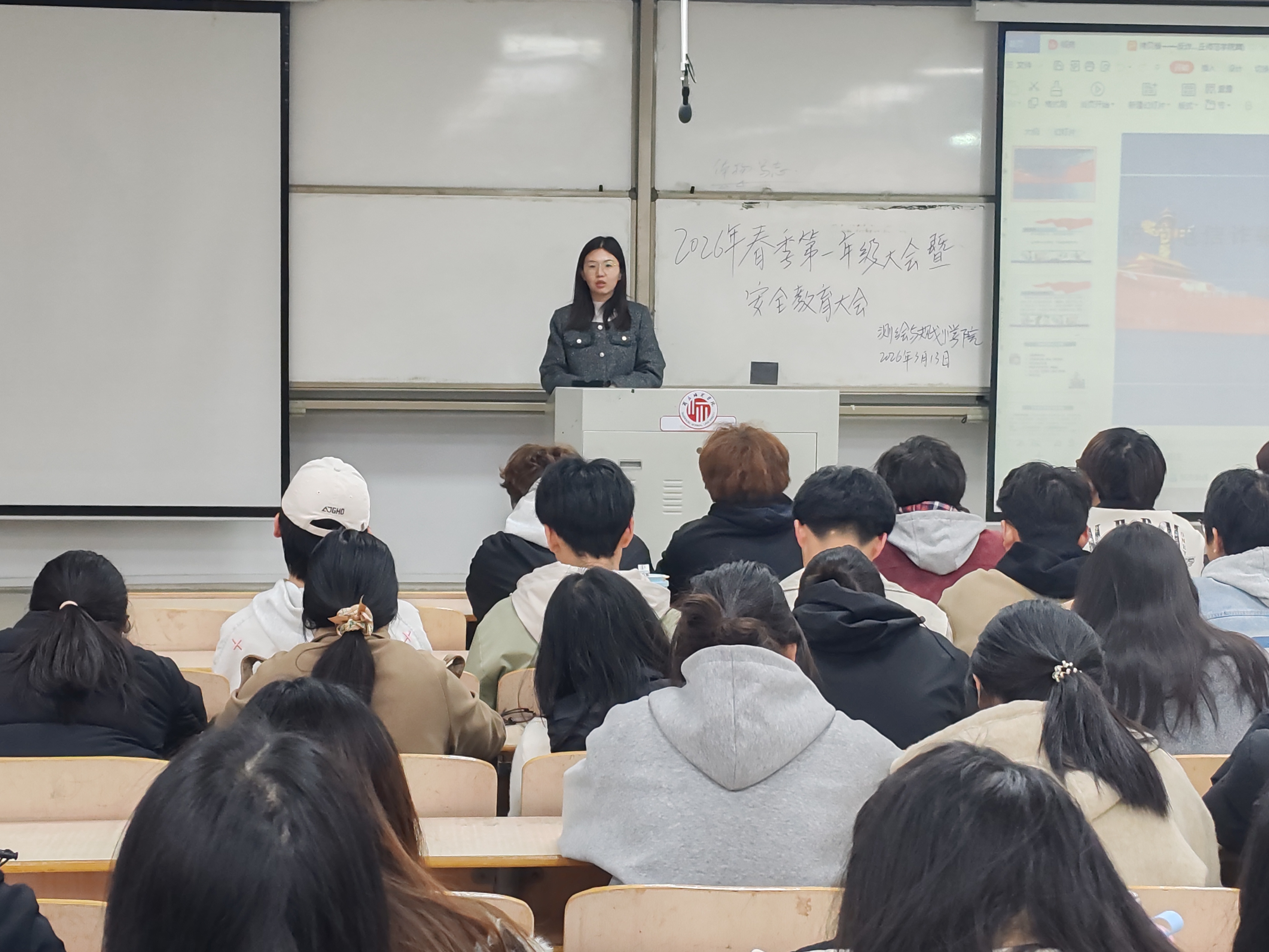 3月13日,测绘与规划学院召开2025级春季学期第一次年级大会暨安全教育讲座,2025级辅导员苏婉月、学院安全员张瑞杰、2025级全体学生参加会议,会议由苏婉月主持。