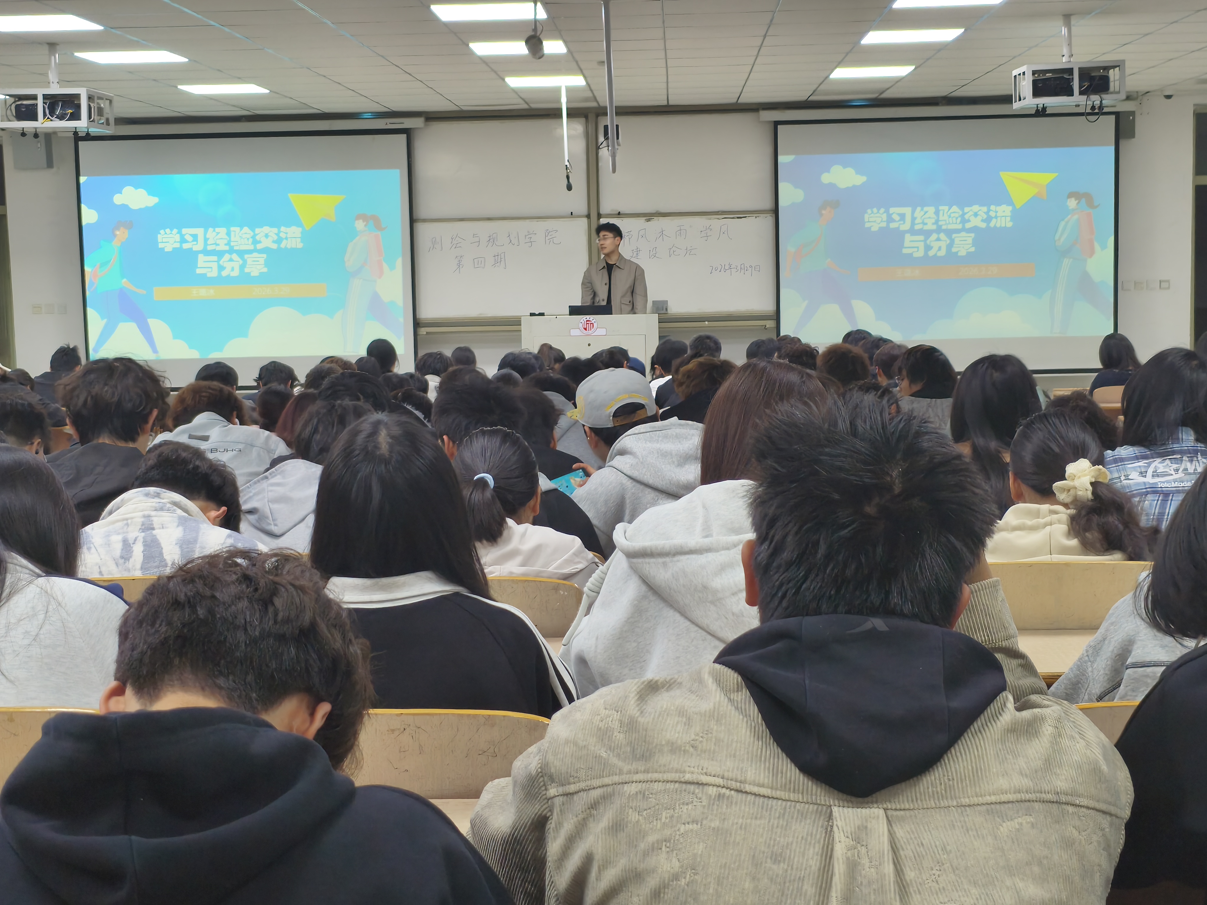 为深入推进优良学风建设,发挥优秀学子的示范引领作用,营造积极向上的校园育人氛围。测绘与规划学院于3月29日举行了第四期“栉风沐雨”学风建设论坛,学院邀请到高年级优秀学生代表分享学习、竞赛、创新创业等方面的经验,全体大一学生参会聆听。此次论坛由李飒主持。