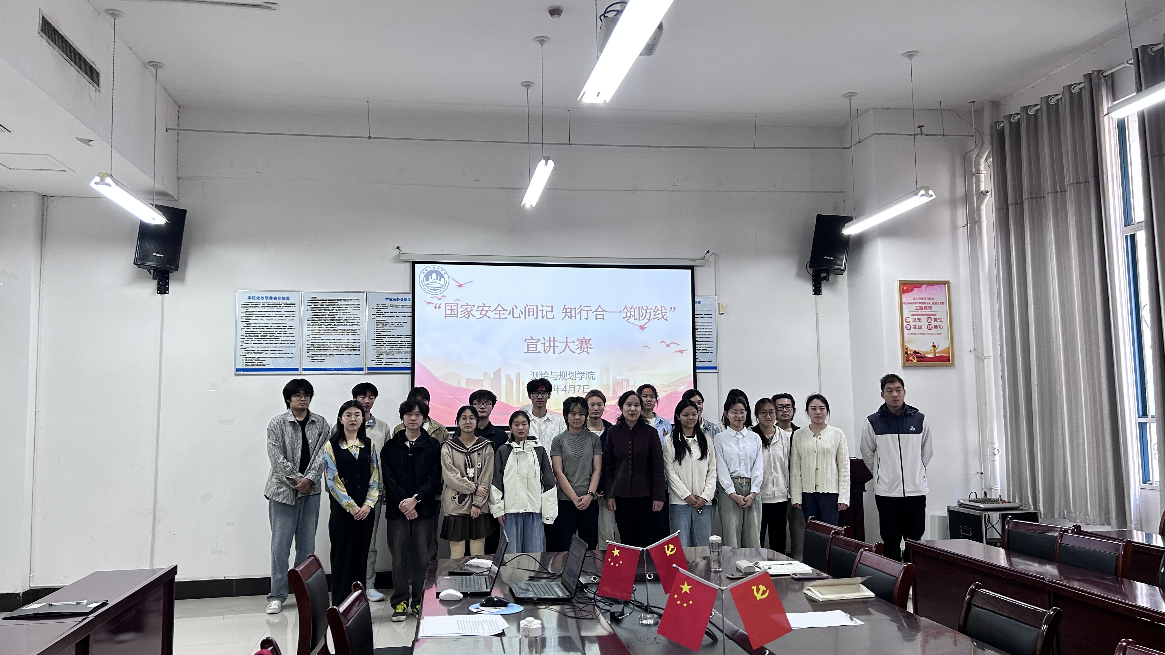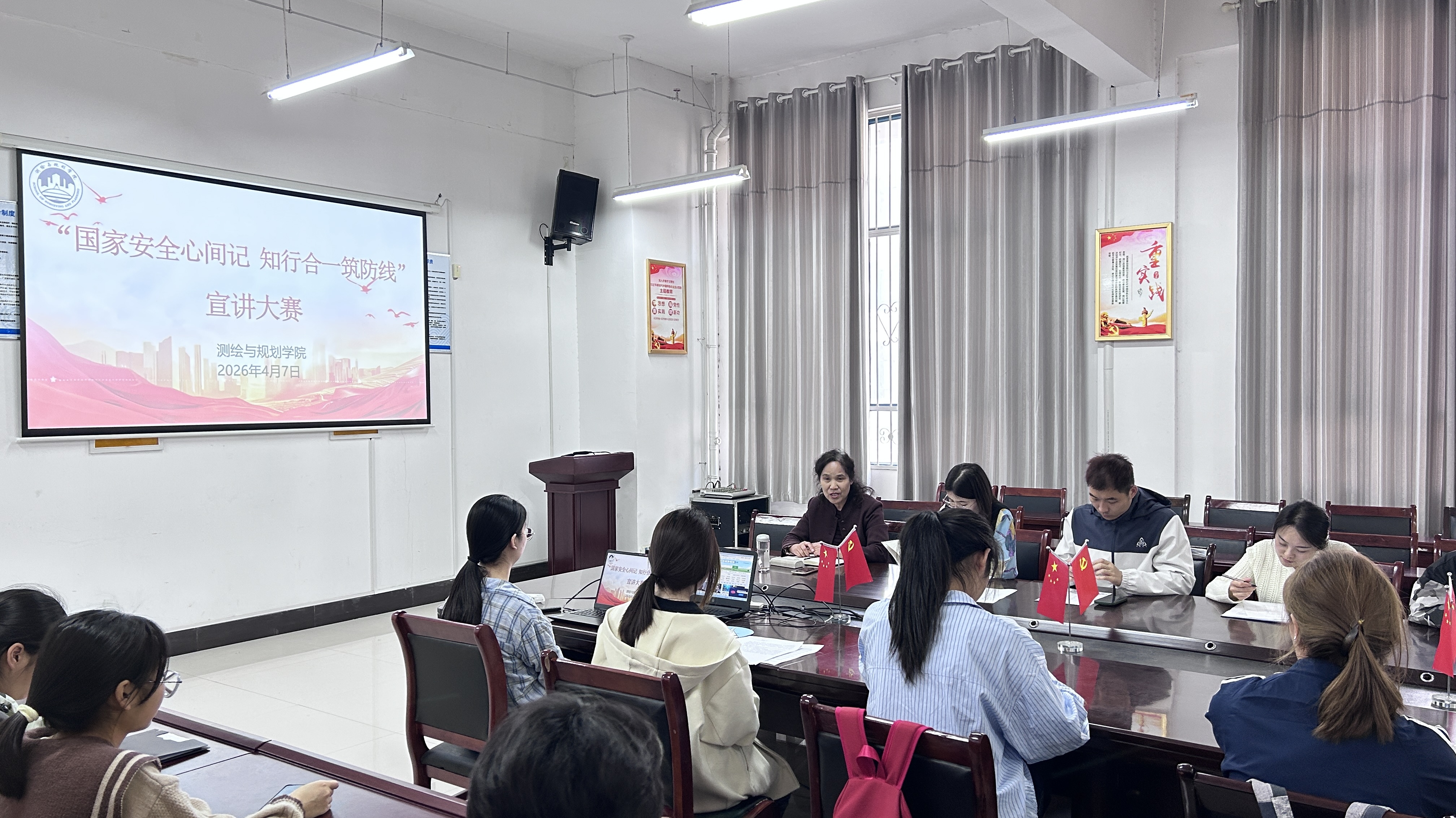 为深入学习贯彻总体国家安全观,增强青年学生国家安全意识,筑牢校园安全思想防线,营造共学安全知识、共护国家安全的浓厚氛围,4月7日,测绘与规划学院于三商楼134举办“国家安全心间记,知行合一筑防线”主题演讲比赛。学院党委副书记王丽、全体辅导员出席并担任本次比赛评委,此次比赛由李飒主持。